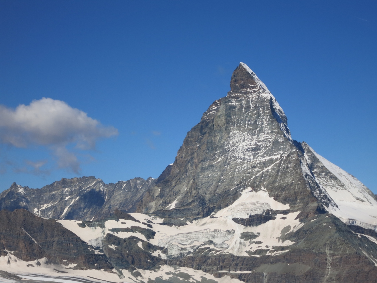無風でないと逆さマッターホルンは拝めませんが、湖を前に従えてのマッターホルンもまた格別です。