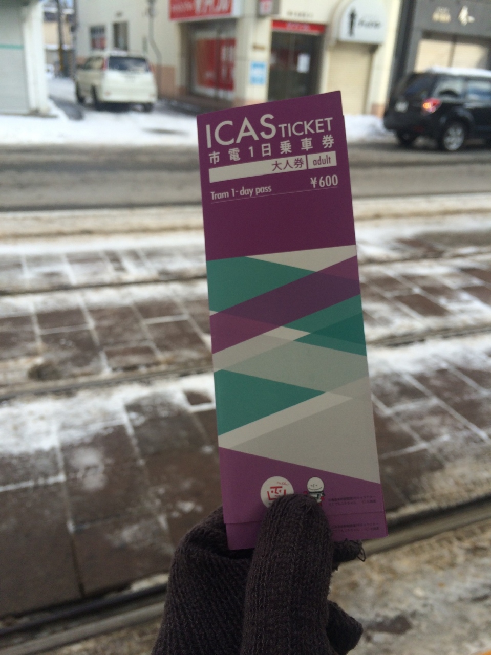 ツアーで、半日函館自由行動があったので1日券を買ってみました。バスとの共通券もありましたが、半日なのでとりあえず市電のみ。600円なので3回以上乗る場合はお得です。少し停留所から歩きますが、五稜郭、教会群、朝一など、回るのに使いました。