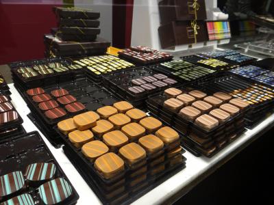 小さくカットしたお店おすすめのチョコを味見させてもらえるところが良。チョコもマカロンも選ぶのに困ってしまうほど種類が多いです。- 旅行時期