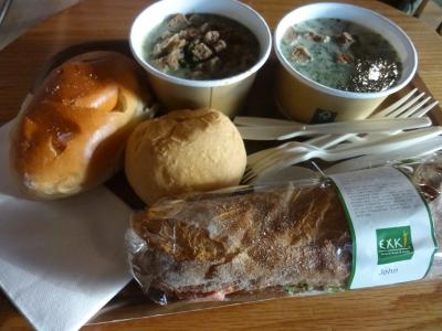 バゲットサンド、スープ、キッシュ、サラダ、デザートが充実していて食べごたえあり。店内は明るく落ち着いた雰囲気です。旅行中は野菜不足になりやすいので、野菜の補給に丁度良いです。- 旅行時期