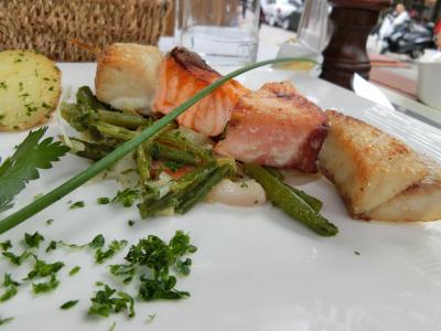 休日のランチで利用しました。12時過ぎに入ったのでお客さんはまばら。テラス席を自由に選ぶことが出来ました。私たち大人は35ユーロほどのコース料理を、子どもはハーフサイズのコース料理を注文。子どものコース料理は15ユーロほどで、お得感があります。