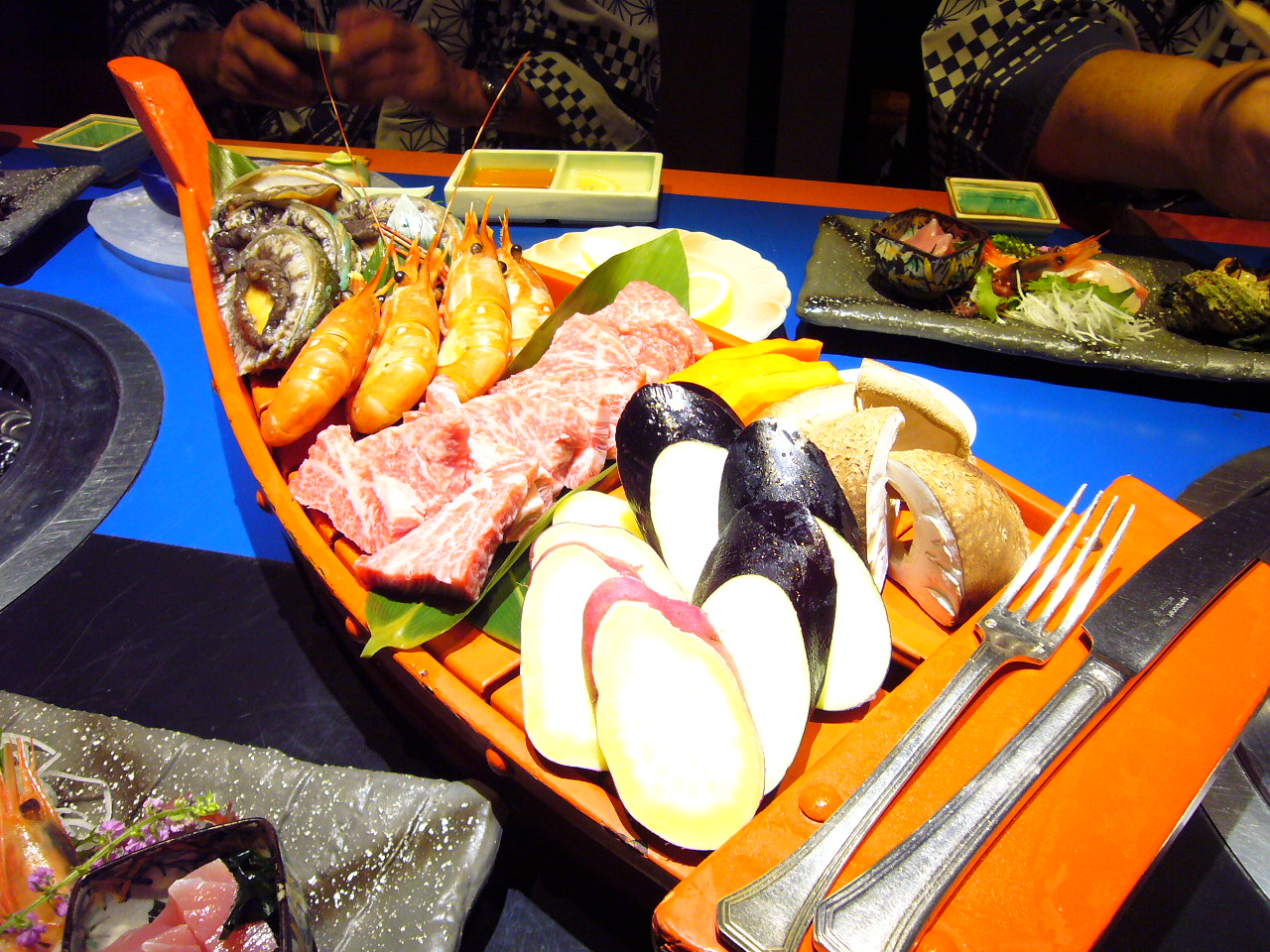 - 北前船盛り炭火焼はステーキもアワビも美味しかった♪