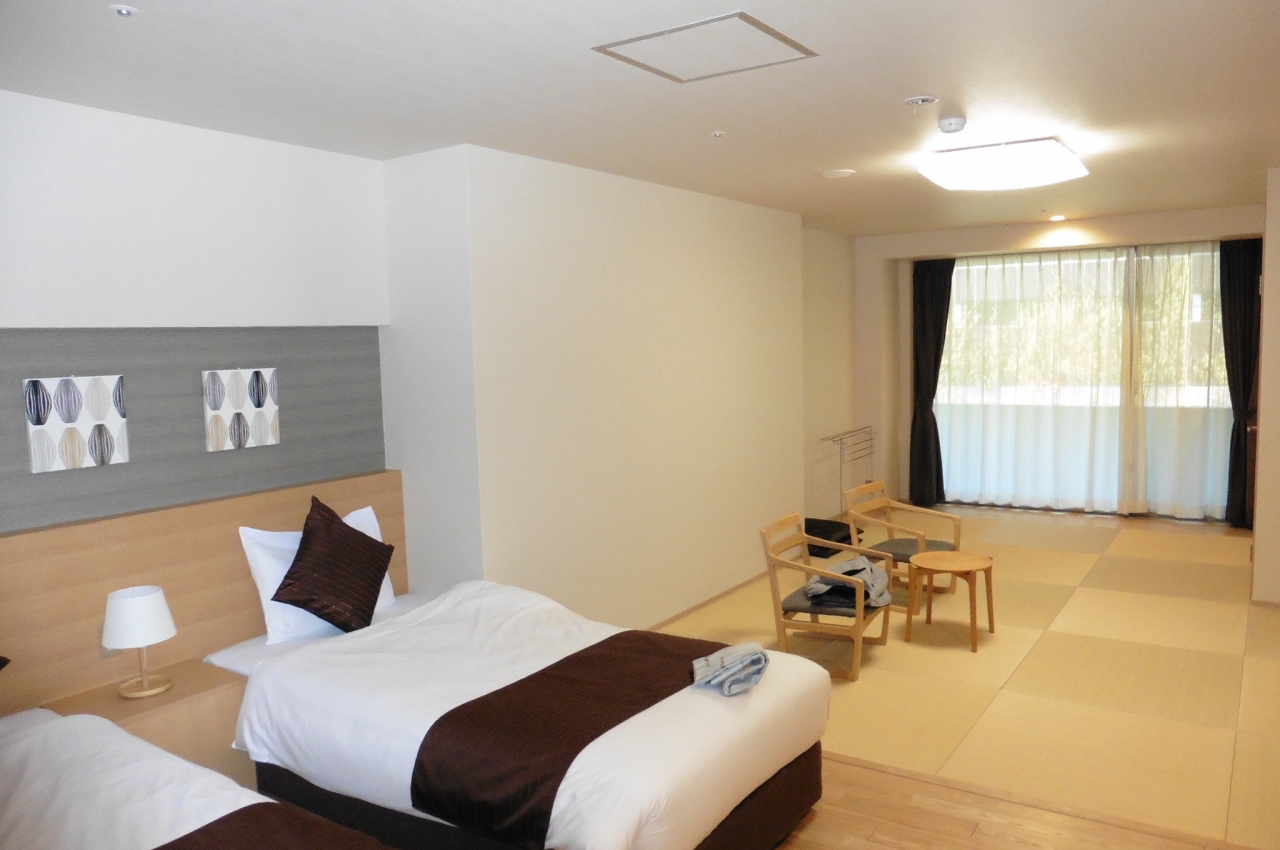 お部屋は12.5畳の和室と広縁、その他にクローゼット前に4畳のスペースがあり、ひろびろとしていました。