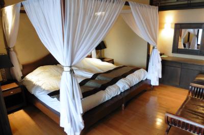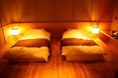 - 広い半露天風呂、静かなデッキ、寝心地満点のベッド。イイ!