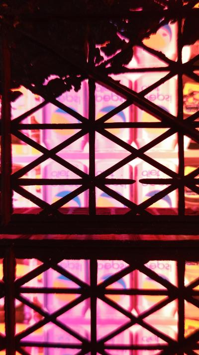 サウジアラビアのお菓子やジュースのパッケージデザインを後ろから照らして...