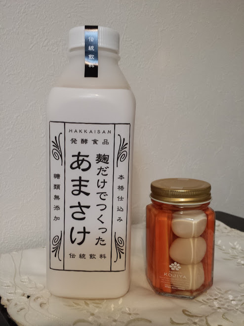 こちらの甘酒が気になり行ってきました。店内は八海山の麹を基本としたドレッシングやバームクーヘン。また色とりどりのピクルスがとても目をひきました。甘酒は飲むだけでなくお砂糖代わりに料理にも使用できるそうです。また利用したいです。