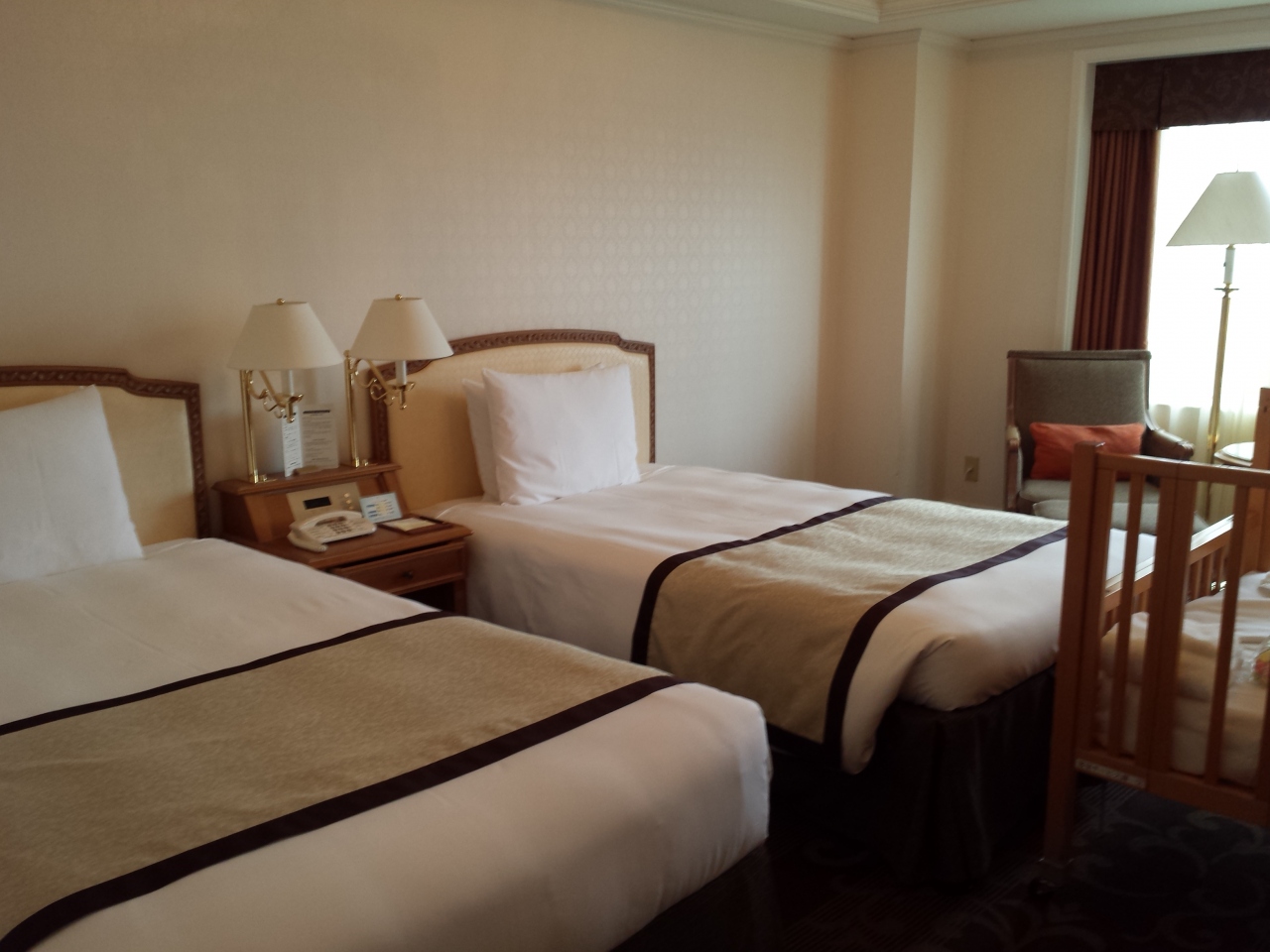 デラックスツインだったのでベビーベッドを入れても余裕の広さで、部屋からの眺望の良くゆっくりと過ごせました。- 旅行時期