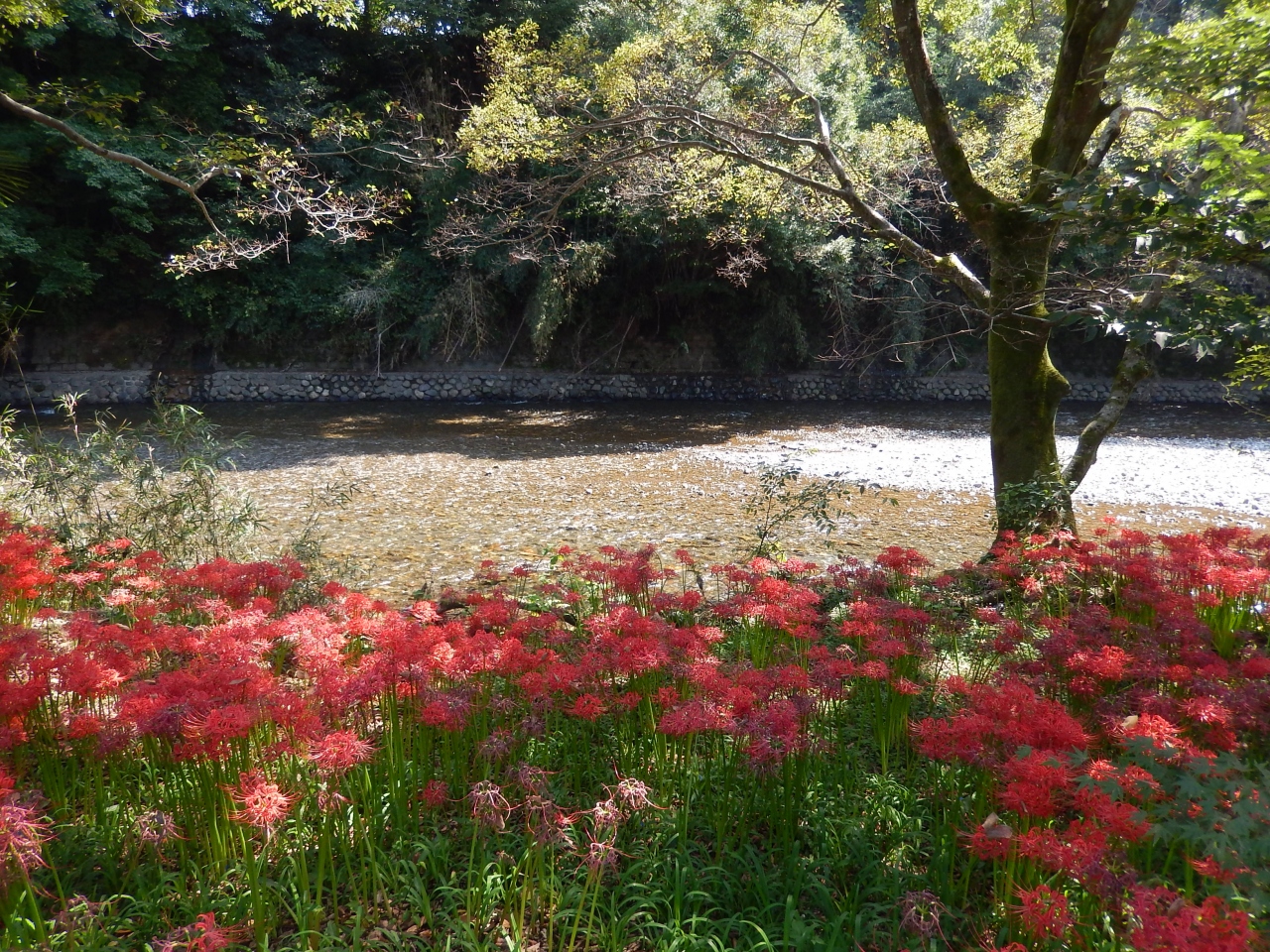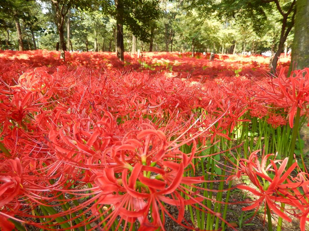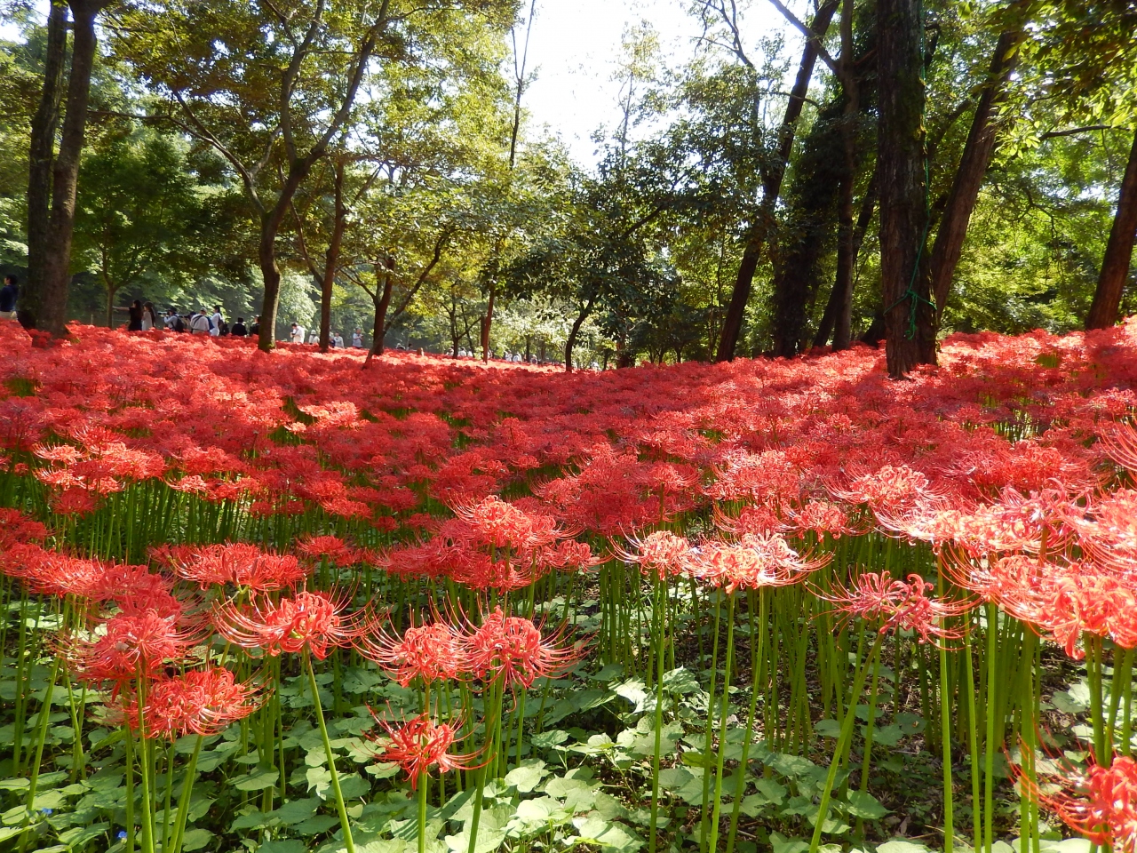 高麗川に沿って公園が続いています。シルバーウィークに出かけましたが、丁度見頃を迎え真っ赤な絨毯のようでした。お祭りの開催時期は露店も出ているのでお昼の心配も無用です。高麗川の河川で休みながら食べるととても気持ちが良かったです。