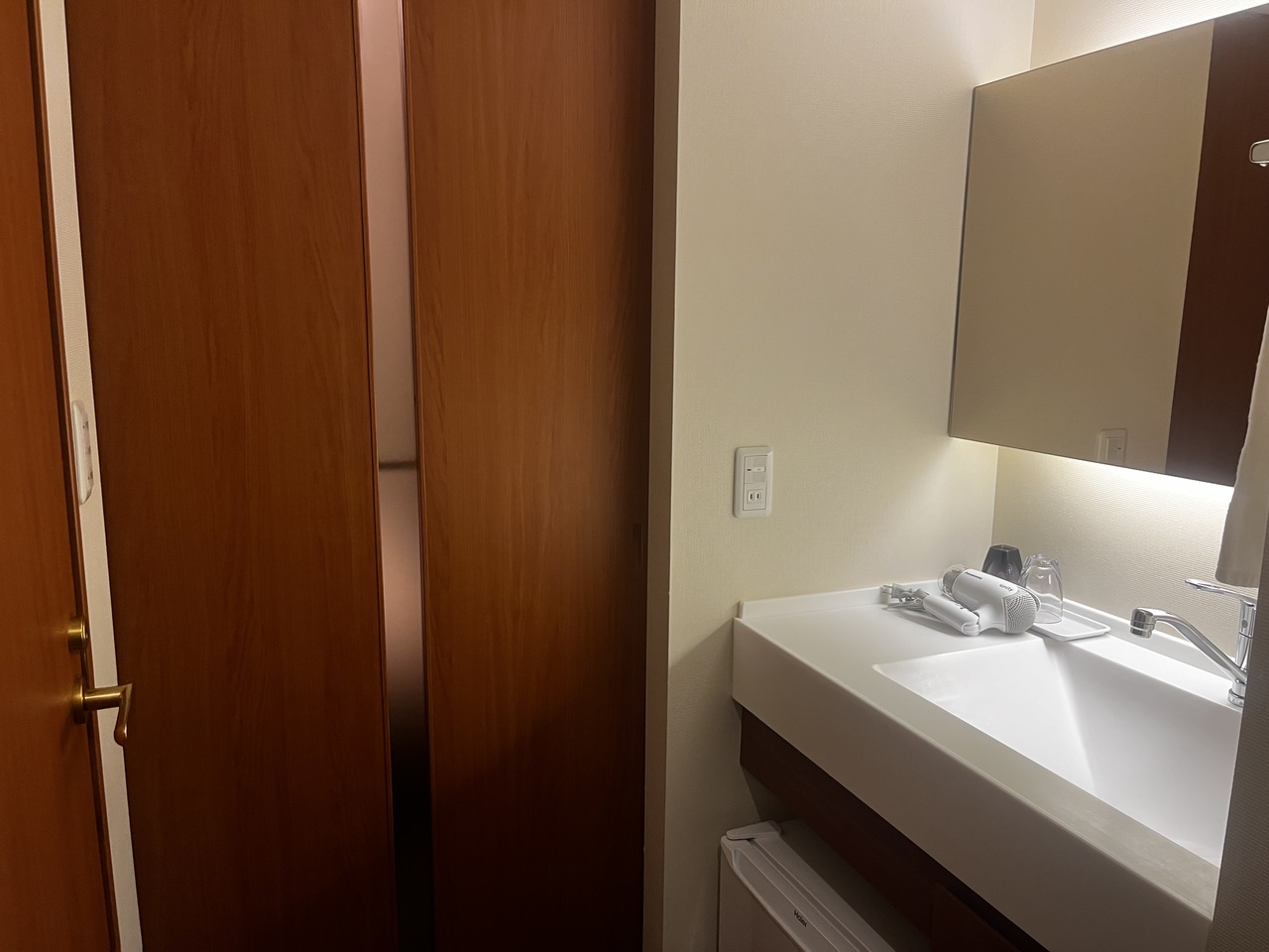 ・部屋のバスルームを使わない前提なのか、洗面台が独立しているのが便利