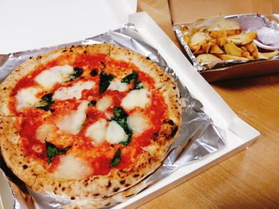 ピザとチーズポテトをテイクアウトしました。ピザは本格的でとてもおいしくて満足です。マルゲリータ980円に対してチーズポテト580円はちょっと高いかなぁと思いましたが、たっぷりの量で納得でした。ピザ一枚2-3人前とありましたが、男性なら一人でぺろりと食べられるサイズだったので、2人前だったら今度は2枚買わないとかなと思いました。