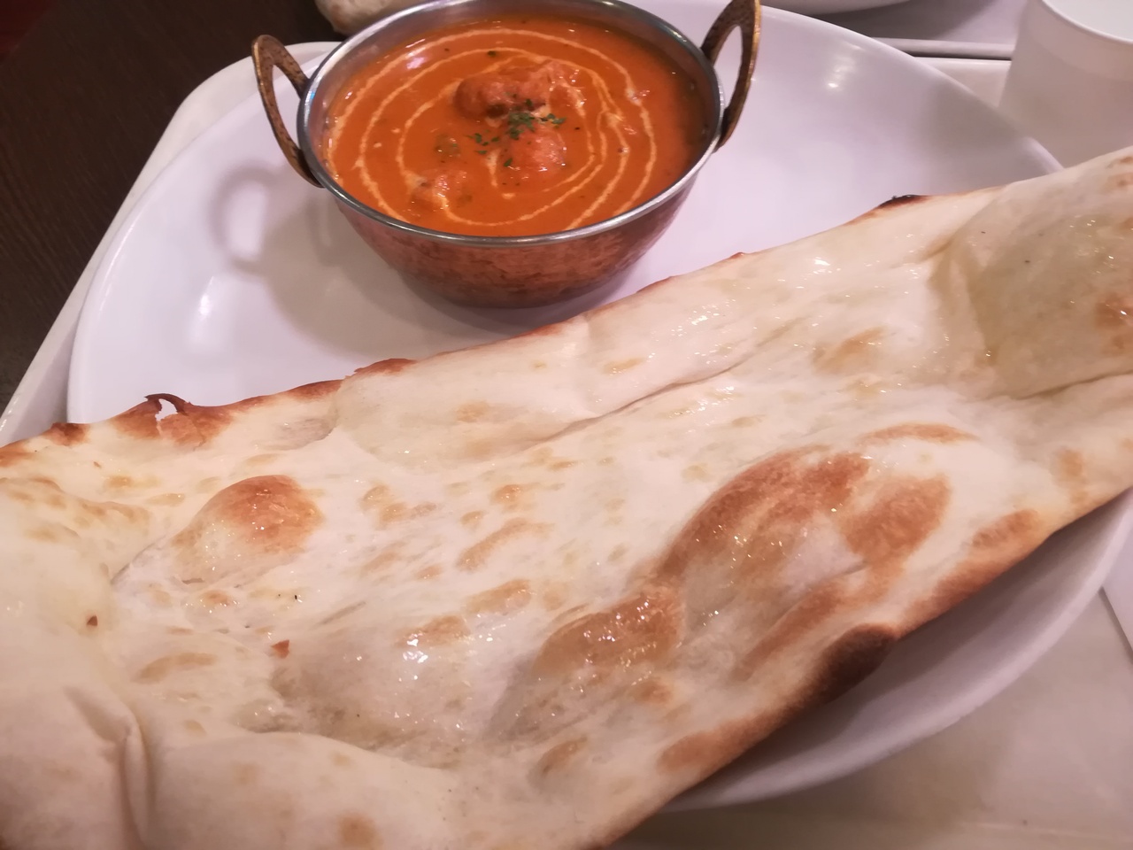 ヴィーナスフォートのフードコートの中にあります。バターチキンカレー(マイルド)850円を頼みました。お台場にしては良心的な値段です。甘口のメニューはこれだけで、他はすべて辛口か中辛でした。ナンはさすが大きくお皿からはみ出していました。味はおいしいですが、インドカレーは少し香辛料が強く感じました。ナンはバターが少な目でした。