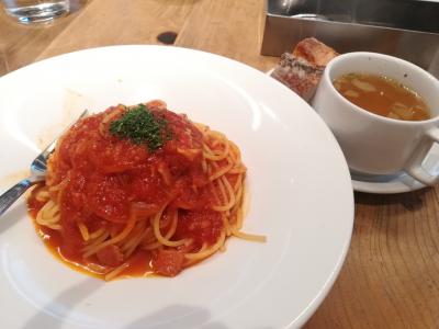 ランチに訪れ、本日のパスタトマトソースを頼みました。スープとパンつきで800円です。パンをスープに入れて食べても美味しかったです。パスタもおいしいですが具が少なかったです。デザートもおいしいです。簡単な囲いがあるテラス席もありますが寒そうでした。