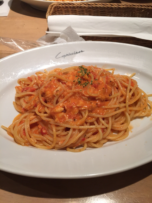 パスタのお味はカプリチョーザの安定の美味しさ。生パスタとかではないけど、期待を裏切られることもない。