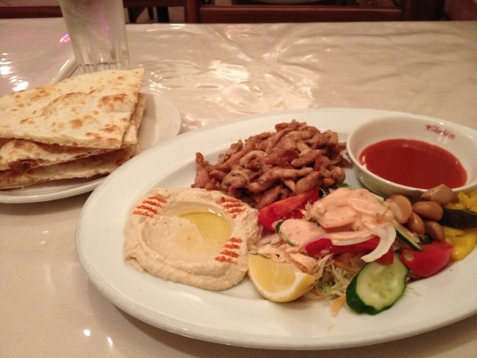 味付けがあっさりしていて夜遅かったけれど、胃がもたれませんでした。フムスがなんか可愛く盛り付けられていてテンションも上がる!
