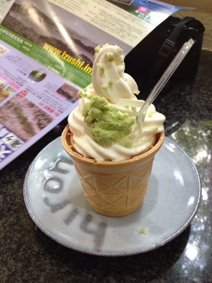 バニラソフトにどかーーんとそのまま生わさび乗っておりますの。