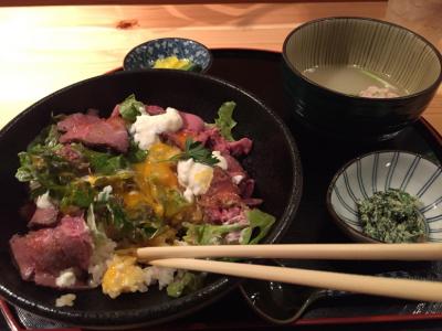 ローストビーフ丼はタルタルと生卵と甘辛いソースがかかっていて、絶妙~な味わい!がっつり食べたいけど上品に見える、女子の味方です!