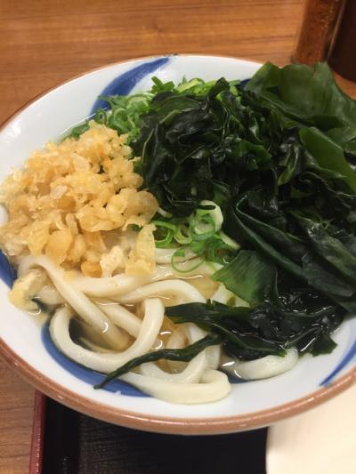 セルフサービスでうどん湯がいたり、出汁入れたりするとこはご愛嬌ですが、なんと、ワカメとネギが入れ放題。ワカメうどんの出来上がり~!
