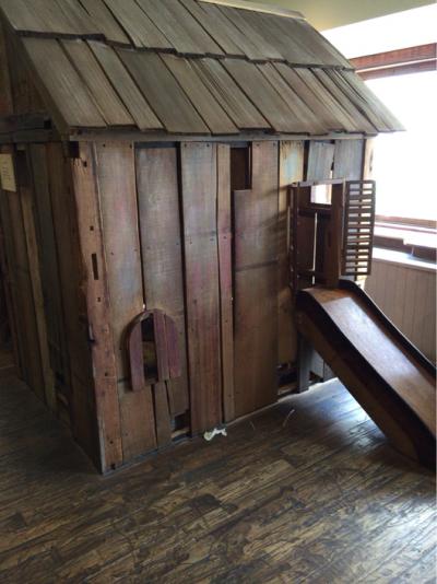 手作りチックな木のお家があり、滑り台やら秘密基地みたいになってます。