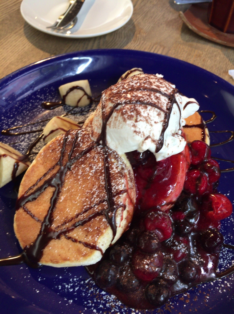 オーダーしたベリーとバナナショコラのパンケーキは千円超えでしたが、うーーん。。
