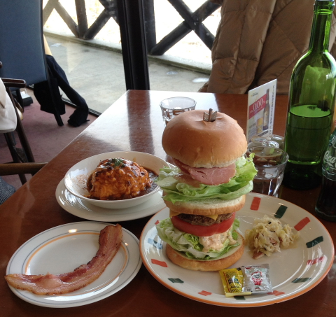 ランチで訪問し、旦那様が清里ジャンボバーガーセット、私はオムライスを頂きました。