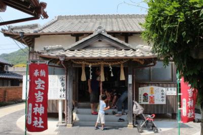宝当神社のホームページによると、アクセスとしては、定期船で高島に渡るか、海上タクシーで渡るかの二通りのようです。私たちは、200円で行ける、定期船を選択した。まずは、唐津城の市営駐車場(カーナビには0955-74-8887で設定)に入り、奥の右端あたりに駐車すると、その名も"宝当桟橋"に近い。そこで橋を渡ると、定期船の乗り場。船は、2時間に1本くらいなので、宝当神社のホームページを参考に出発時刻の10分前に行くと乗船開始です。土曜日の訪問だったので、ほぼ満員になりましたが、積み残しが出るほどではありませんでした。船に乗ること、10分程度で、高島に到着です。さて、高島に到着したら、宝当神社にお参りしますが、神社までは3分かからなかったです。みなさん、すぐにお参りされるので、船がついてすぐは結構込み合っています。お守りなどをみて時間調整しました。帰りに宝当グッツなどをお店で購入して、船着き場までゆっくり歩いても、30分もかからない行程です。直近の船で帰ることができます。まさにサクっと行ける観光地。みなさまも、当たりますように。