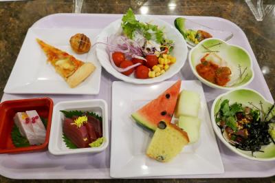夕食朝食のビュッフエも美味しかったです。まぐろをたくさんいただきました。