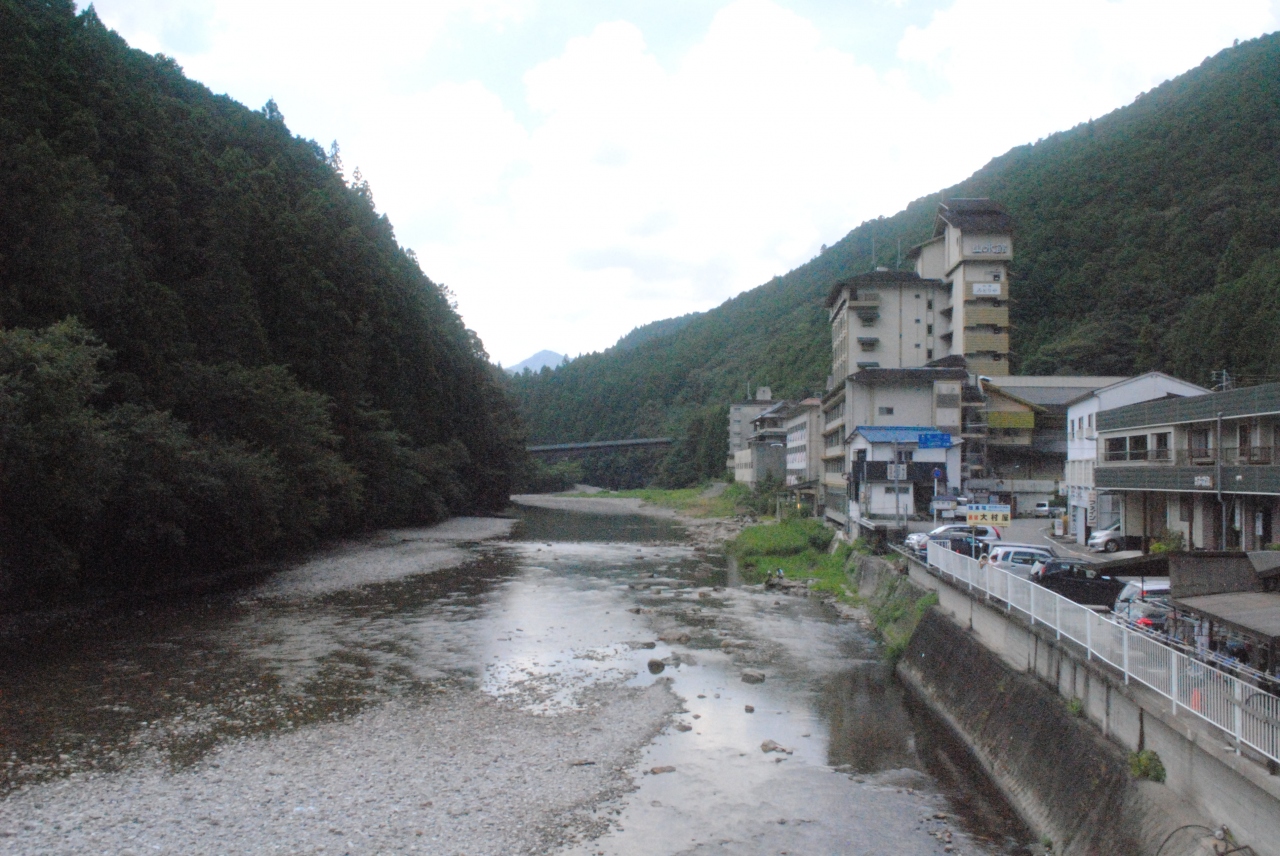 本宮大社から3、4キロほどの場所にあり、大塔川の河原沿いに並ぶ温泉街になります。
