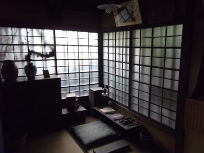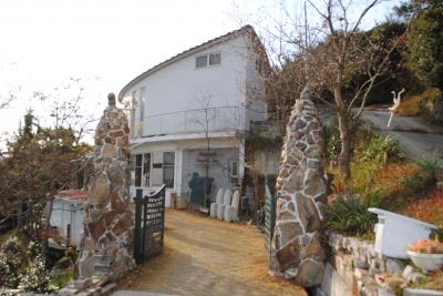 建物の1Fが作業場と喫茶スペース、2Fが画の作品が並び、野外に現代アート作品が並びます。
