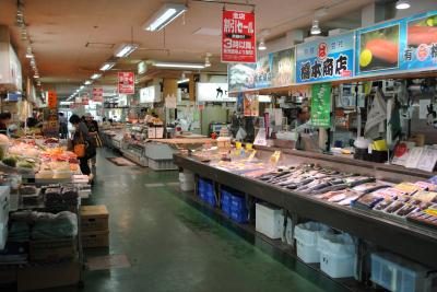 釧路駅近くにある和商市場ですが、建物の中には所狭しと海産物を扱う店が立ち並びます。