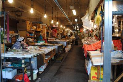 ここで買った新鮮な魚介類を、市場の中にある食堂でごはんを買い、ご飯にのせて食べるのはなかなかいいですね。
