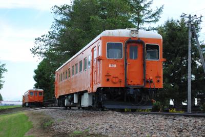 ホームにはぽつんと国鉄のオレンジ色した車両はぽつりと。