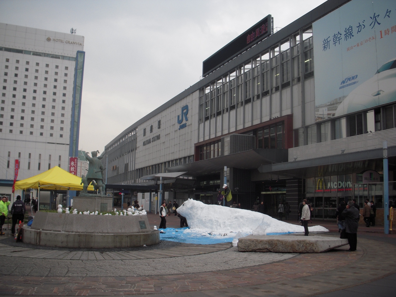 岡山駅の正面口を出て、右手に徒歩1、2歩いたところにあります。