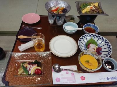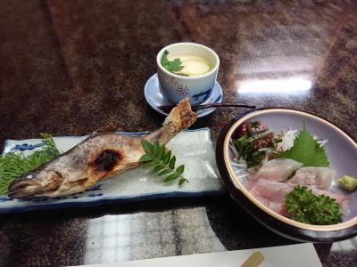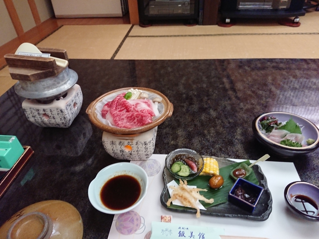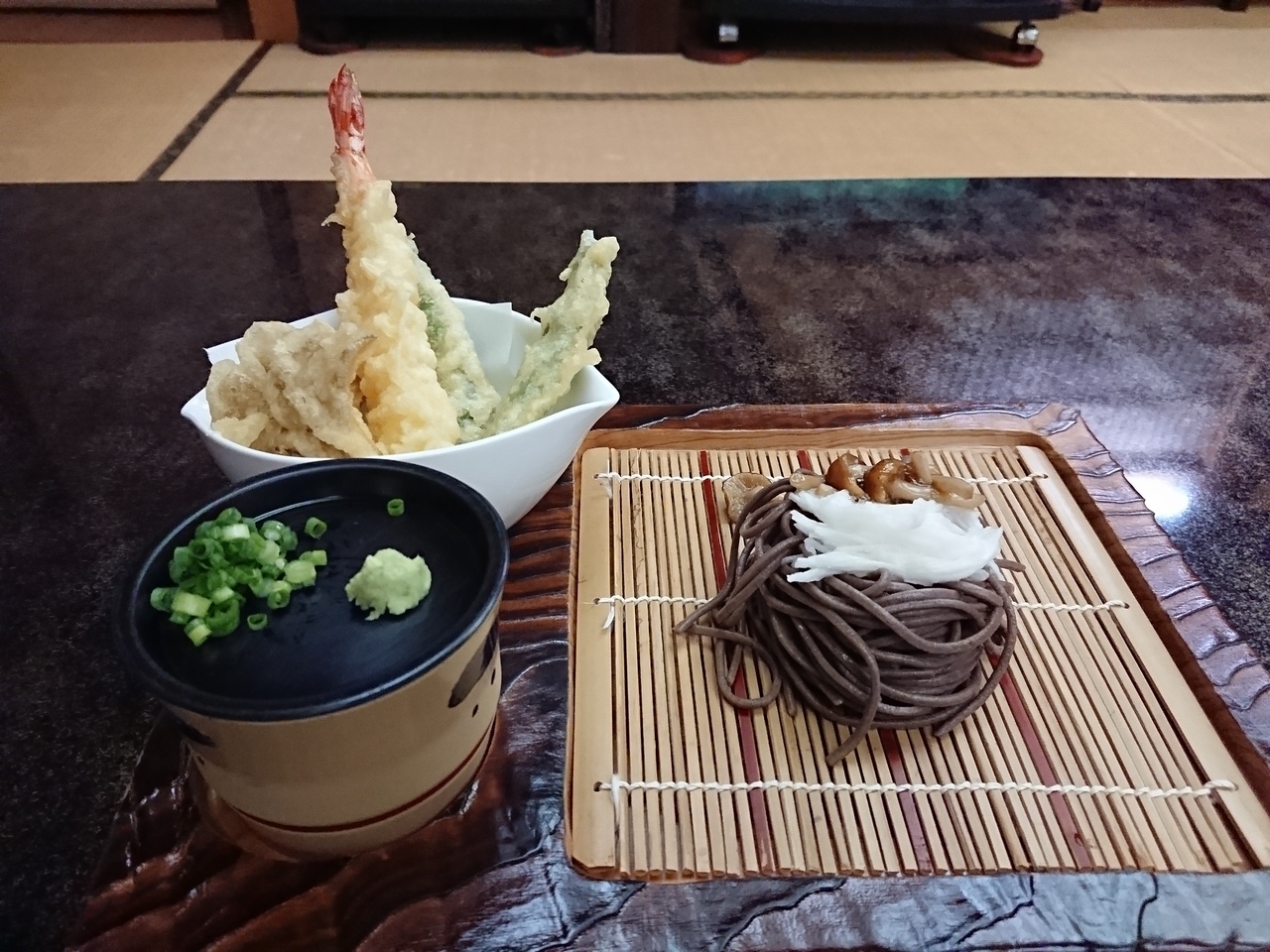 イワナの焼き物にイワナの刺身、飛騨牛の焼き物に天ぷら付きそば、釜飯、茶碗蒸しなどどれもとてもおいしくいただけました。