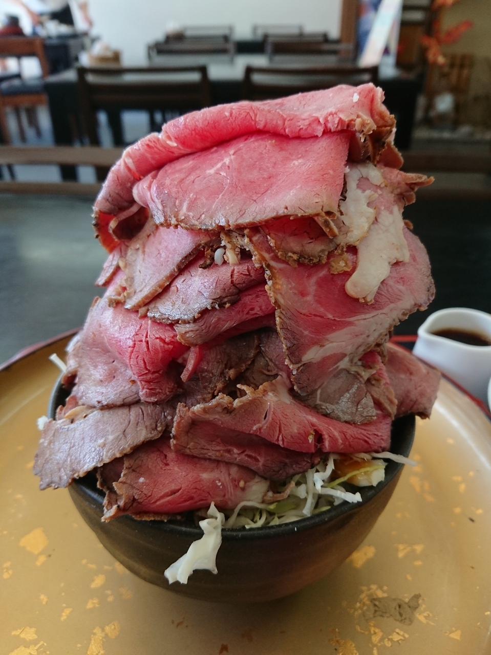 店員さんが大きなお皿に乗ったローストビーフを持ってきてくれますが、席でごはんの丼の上に器用に乗せていきます。