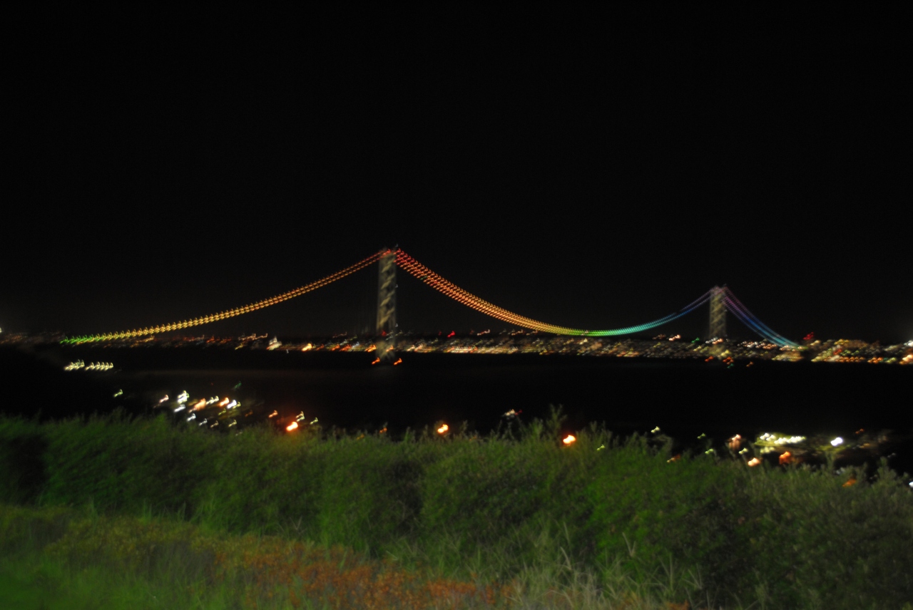 夜はライトアップされ、色とりどりのライトがきれいに橋を引き立たせています。- 旅行時期