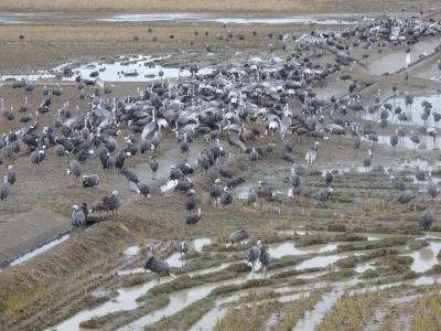 センターに向かう道は田んぼが広がっているのですが、この時点でツルが普通に観察できます。(道幅は狭いので駐車は厳禁だと思います)