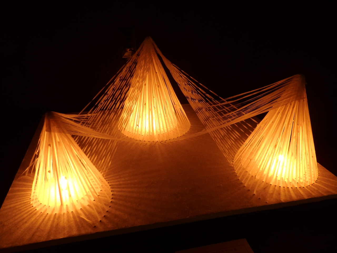 1階で受付を済ませ、2階が展示ゾーンになります。建物のもともとの構造を活かしながら、そこに美濃和紙と灯りを融合させた作品がたくさん展示されています。