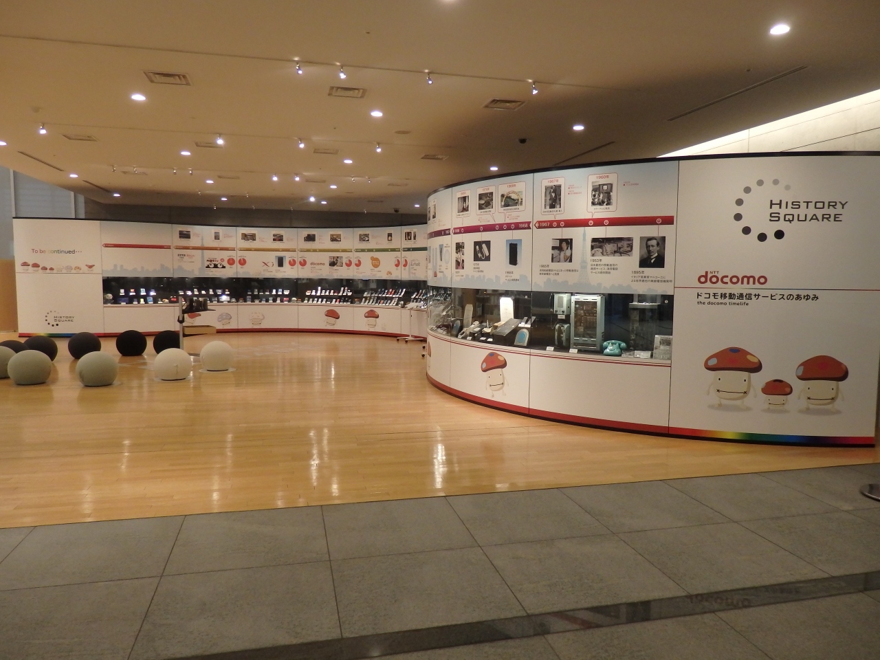 無料で見学することができますが、ドコモの携帯電話の歴史を時代順に実物を見ながら見ることができます。