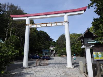 鎌倉宮に到着すると、白地に朱色が加わっためずらしい鳥居が出迎えてくれました。
