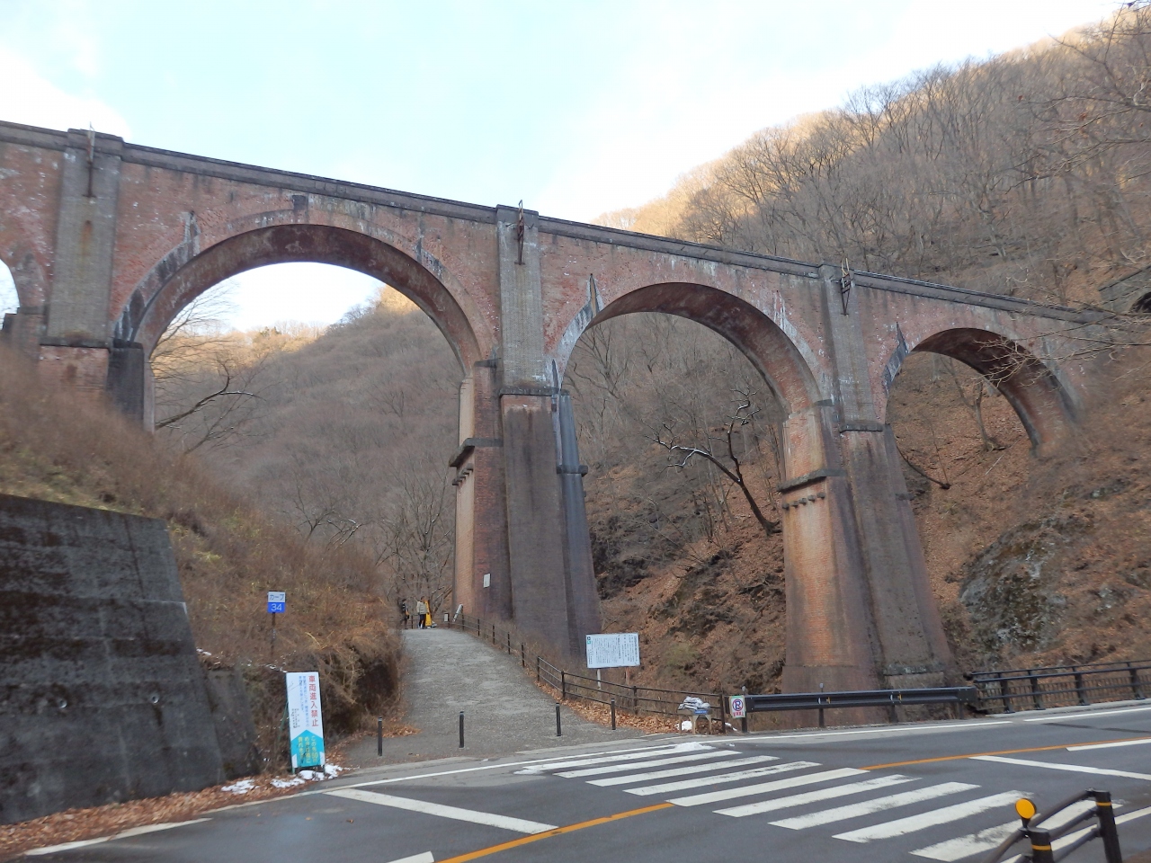 めがね橋辺りは車を停められないので、数百メートル上がった専用駐車場を使い、歩いていきました。