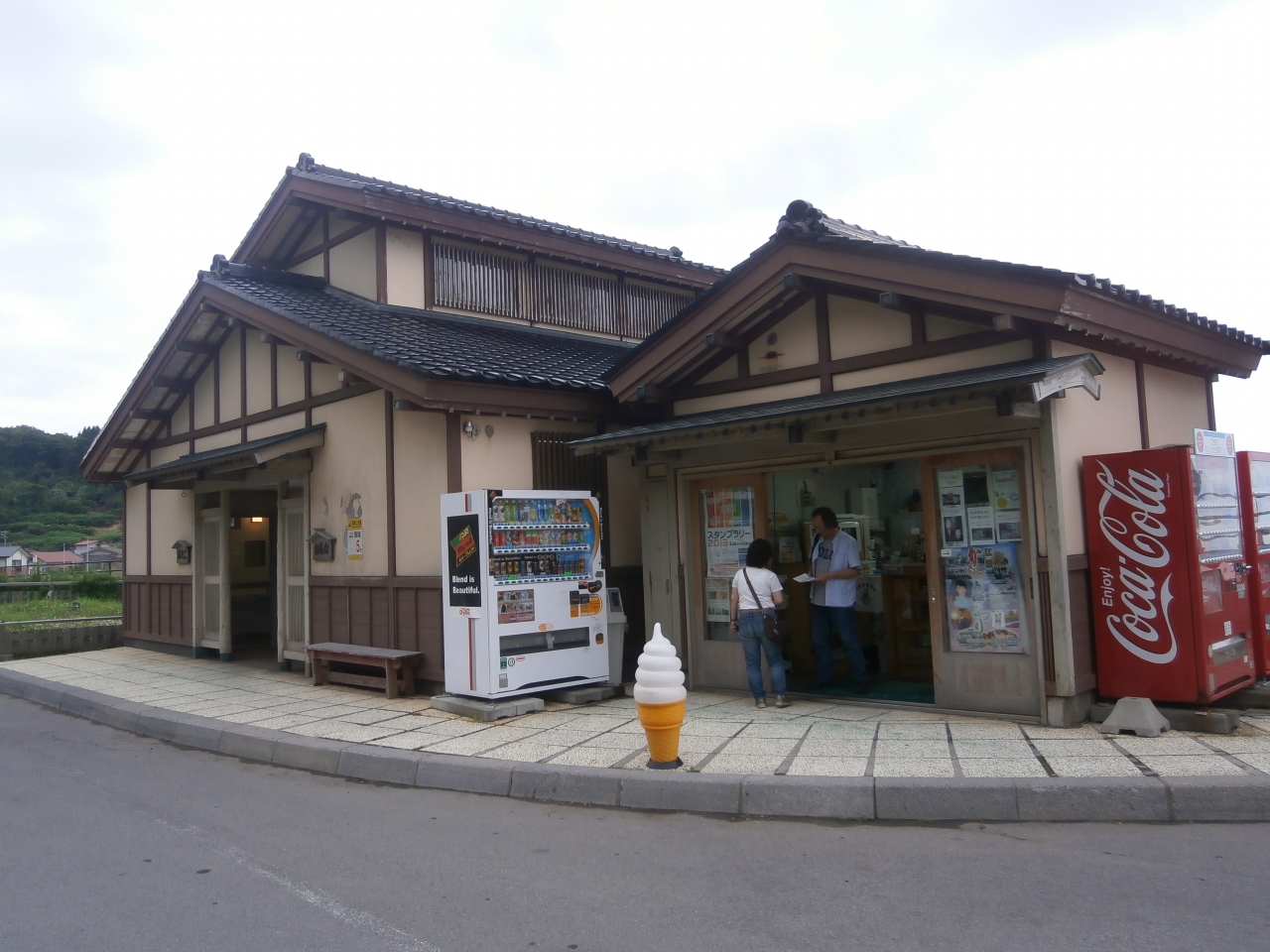 道の駅はログハウス風の建物になり、右側にレストラン、左側が物産館になっています。