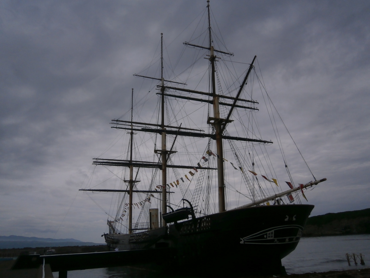 1868年11月15日に、江差沖で座礁し沈没したといわれる開陽丸ですが、かもめ島の手前で復元再現されています。