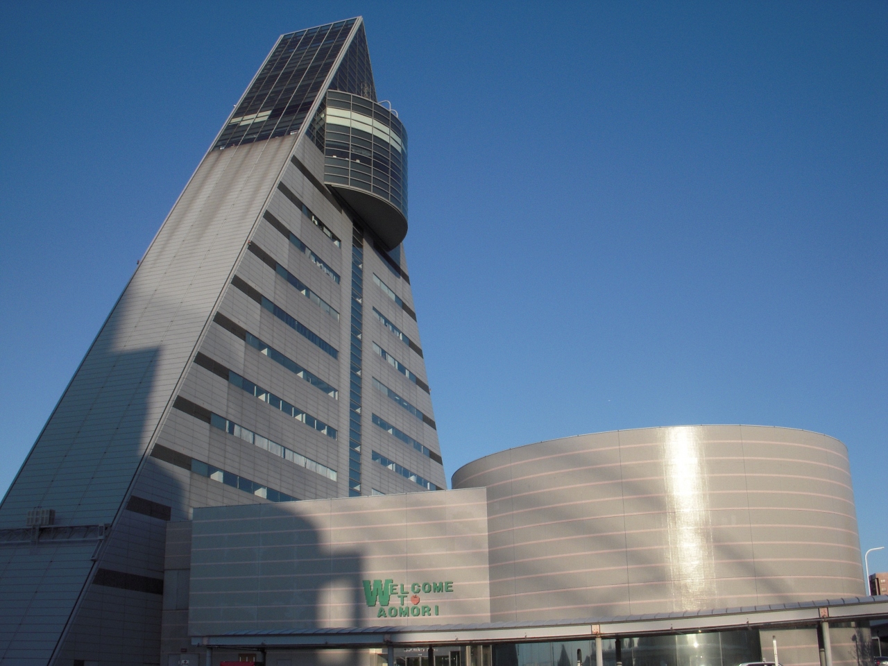 青森駅から徒歩10分ほどの場所にありますが、何といっても外見が特徴的で、正三角形の形をしたビルなのですぐに分かります。