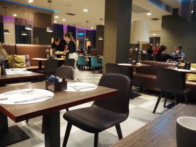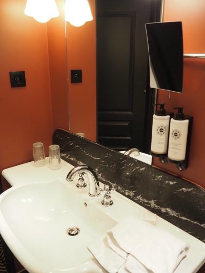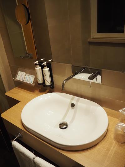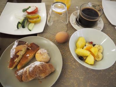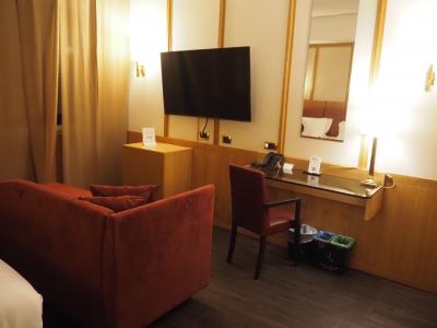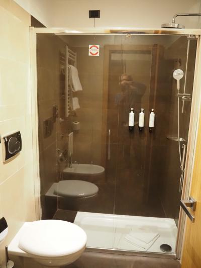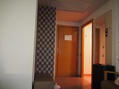 イタリア旅行最後の宿泊ホテルです。駅から徒歩3分のところにありますが、例のごとく、場所がわからず、グーグルマップもあてにならずで、駅の周辺をうろうろ行ったり来たり。結果的には、駅から見える至近距離にありました。外観は地味ですが、近代的、機能的で新しく綺麗、部屋も広く、とても気持ちが良いホテルです。内装は少し変わっていて、ポップでアートな趣きを感じました。歩道からエントランスまで数段の階段がありますが、スタッフが待機していて、荷物を持ってくれました。あわててチップを準備しました。フロントは、自分の仕事に手いっぱいで、顧客に気が付かず、チェックインに時間がかかりました。TWINを予約したのにダブルになってしまった。応接セット付。ハードは素晴らしいホテルですが、オペレーションがイマイチでした。ホテルの朝食会場は、広々としていてスタイリッシュな作り。隣の席との間隔も十分で、食事がしやすかったです。朝食はメニューが豊富。足りなくなるとすぐ補充してくれます。クロワッサンの中でも、プレーンとチョコは絶品でした。他のホテルの朝食に比べると、食パンやフランスパンの質も高かったように思います。