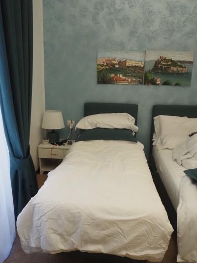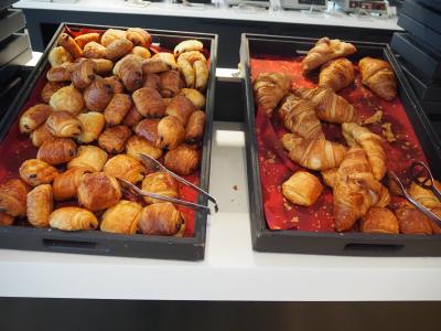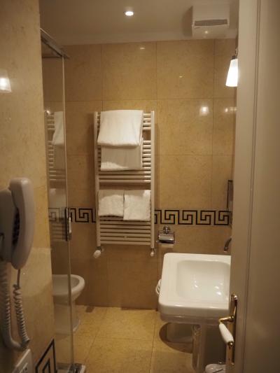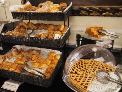 テルミニ駅からA線で2つ目のマンツォーニ駅最寄りの、ホテルミルトンローマ。出発直前に予約。駅の出口の目の前にあるのですが、反対の出口に出てしまったため、駅の周りを15分以上ウロウロする羽目に。グーグルマップがあるにもかかわらず、最寄駅を降りてからホテルを探すのにいつもとても苦労します。ホテルミルトンローマは、古いホテルで、部屋は小さめですが、駅近で、大きな通りの交差点に位置している割には、静か。朝食もおいしく、今回泊まったホテルの中では、コスパ最高でした。イタリアのホテルでは、珍しく、バスタブ付き。ベッドもリクエスト通りに2台(ダブル+シングル)。シングルは補助ベッドみたいに小さかった。朝食のメニューの豊富さには驚きました。特に、パンの種類が多くて、パン好きにとっては、何よりもうれしいです。クロワッサンだけで、6種類もあり、カスタードクリームに、チョコレートクリームに、、、どれも美味でした。ロースハムは肉厚で脂が良く乗っていて、日本ではなかなか食べられない上質なハムでした。残念ながら、期待していたデニッシュやペストリーはありませんでした。これは、その後に泊まった他のホテルの朝食にも共通していたので、イタリアの朝食は、そういうものとあきらめました。