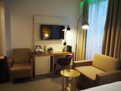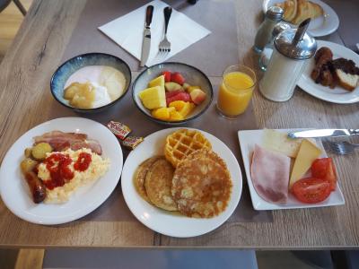 スペイン系のホテルチェーン=NHコレクションに3連泊しました。NHコレクションは、ヨーロッパの主要都市に数多く展開しています。綺麗でスタイリッシュ、客室も広くて、快適に過ごすことができました。グランプラスにも徒歩10分かからず、主な見どころに徒歩でアクセスできる便利なロケーションにあります。とても良いホテルなのですが、泊まった部屋は、隣家が間近に迫っていたり、客室の窓が、道路に面していて、窓を割られたら、簡単に室内に入られてしまうのは、セキュリティー面では、イマイチでした。客室は広々としていて静か。ゆっくりと、くつろげます。ビュッフェ方式の食事は、とても豪華版でしたが、その分、値段も、目が飛び出るくらい高価なので、2日目からは、コンビニのテイクアウトに切り替えました。