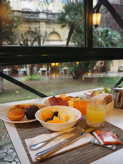 キリナーレは、テルミニの隣駅のリパブリカから徒歩2分という便利な場所にある老舗ホテル。おしゃれなナツィオナーレ通りに面していて、テルミニ駅も徒歩圏内。どこに出かけるにも便利な立地。19世紀の建物を利用しただけあって、内外装がとてもシックで、格調高く、ローマに来たことを実感できます。フロントの男性は日本語ペラペラでフレンドリー。部屋は広く、ゆっくりくつろげます。リクエスト通り、ツインを準備してくれましたが、シングルベッドは小さいです。イタリアの人は、こんな小さいベッドで大丈夫なのでしょうか?あと、トイレの水量が少なく、流れが悪かったことを付言しておきます。朝食会場は、眺めが良いテラス席もあり、素晴らしい環境の中、とても優雅に贅沢に食事ができます。今回の旅行の中では、一番、リッチな朝食だったと思います。メニューが豊富で、どれもとてもおいしく。しいて上げれば、パンケーキやワッフルがなかったのは、少し残念。