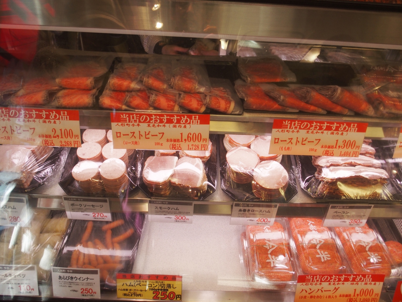 今半の人形町本店です。甘酒横丁から20Mほどのところにあります。1階が店舗になっていて、肉類を販売しています。土曜日のお昼でしたが、10人くらいのお客さんが並んでいて、大繁盛でした。それもそのはず、街中の肉屋さんよりも割安感あり、当然デパートの地下よりもはるかに割安で、お得です。しかも、焼き豚にローストビーフ、ベーコンを買いましたが、どれも1級品で、美味でした。ローストビーフは、夕方16時から先着50名限定でさらに安くなるようです。