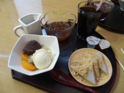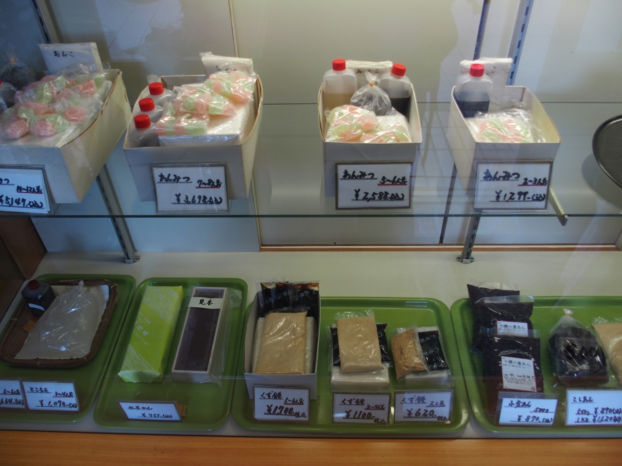 池上本門寺入口の目の前。くずもちの老舗です。喫茶はなかなかの人気で順番待ちでした。意外に奥行きが広く、10組は座れるスペースがあります。ミニくずもちセットを注文。くずもちに、クリームあんみつ、ところてん、コーヒーがついて、値段もお手頃、CP良好です。