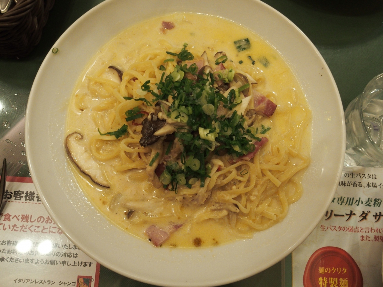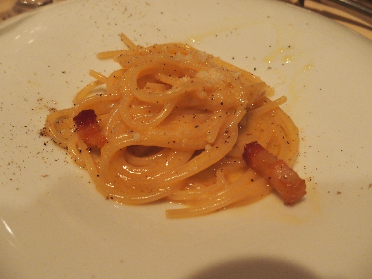 目黒駅の権之助坂に面した狭いビルの3階。いまにも壊れそうなエレベーターで昇ります。店内は狭く、暗く怪しげな感じ。テーブルのすぐ後方がトイレで、あまり気持ちよくありません。パスタや肉料理、野菜料理などとお酒を注文。パスタは麺のゆで方が今一つ。とにかく単価がバカ高く、この料理と雰囲気に対しては、とても釣り合いが取れません。お酒のリストがなく不明朗。しかも、マスターが一人でやっていて、スタッフは一人もいないことを考えると、この価格設定は理解できません。